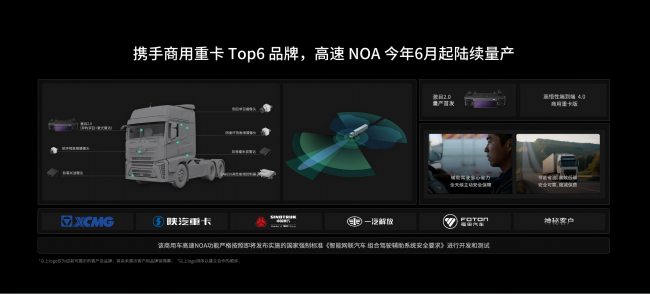 当乘用车区的合作逐一展开,展台上那台重卡所承载的意义便愈发清晰。在商用车领域,卓驭已与中国TOP6商用车品牌建立合作,重卡车型将于今年6月起陆续量产。技术架构上,重卡搭载的控制器、算力配置及高悟性端到端4.0系统,与乘用车完全同源。针对重卡高大的车身和维护清洁难题,卓驭首发激目2.0舱内变焦方案——低速广角覆盖盲区,高速缩窄视野以增加探测距离与点云密度,为重卡这类加减速受限的生产力工具提供量身定制的安全方案。